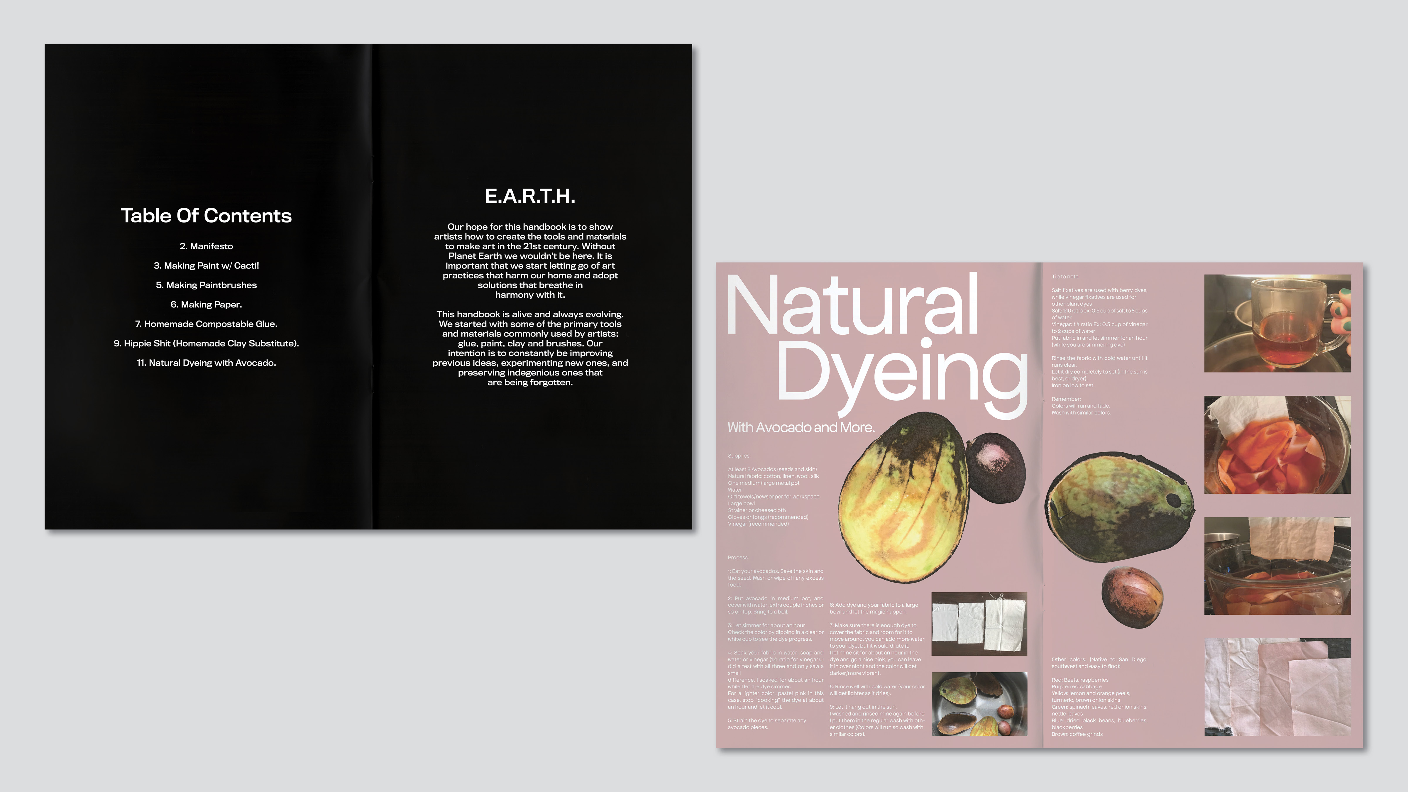 EARTH (Essential Artist Resource and Technology Handbook) was born from a collaboration with ARTS (A San Diego arts organization that provides no-cost art programs to youth) and Casa Tamarindo ( A binational design house focused on environmentally sound practice). Because of Covid-19 and the need to work remotely, we collaborated on finding and sharing vernacular/ indigenous methods for creating art materials. This work was used to start a database of information for artists who wanted to make their art tools at home. My work was to research and practice the techniques, sharing the information through photos which would eventually be used for the first publication which was entered into the climate change mitigation competition: Connect4Climate.