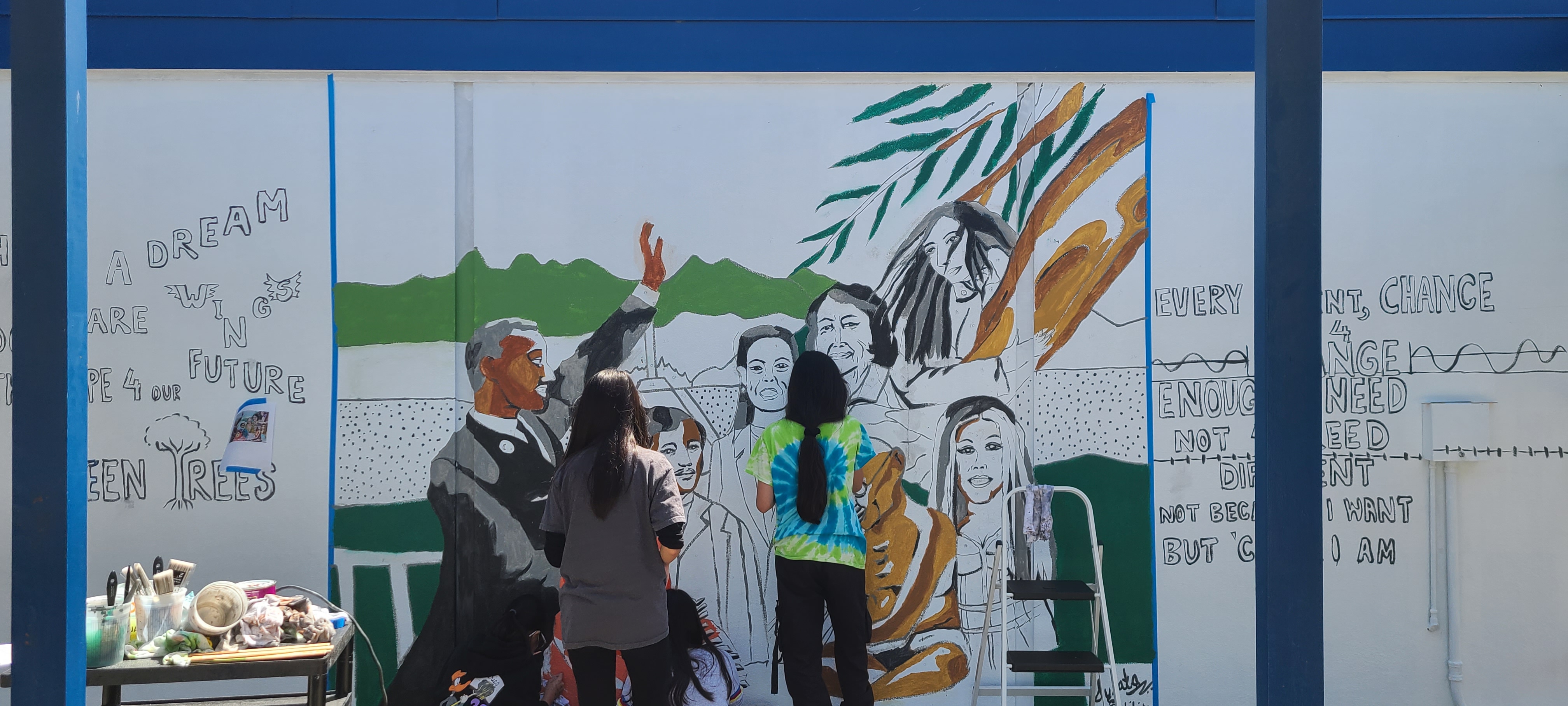 Located at Alexander Rose Elementary School, this mural project is a collaboration between painter Sujata Tibrewala and myself. Noticing a lack of public images of role models of color, this mural was designed to offer inspiration and encouragement to young people, featuring exceptional leaders who look like them. We had a great time engaging with the students. Sujata and I separately created a proposal for the students to vote on. They chose Sujata’s mural. Sujata and I painted the outline and placed numbers in the spaces for students to fill in. They did a fantastic job!
