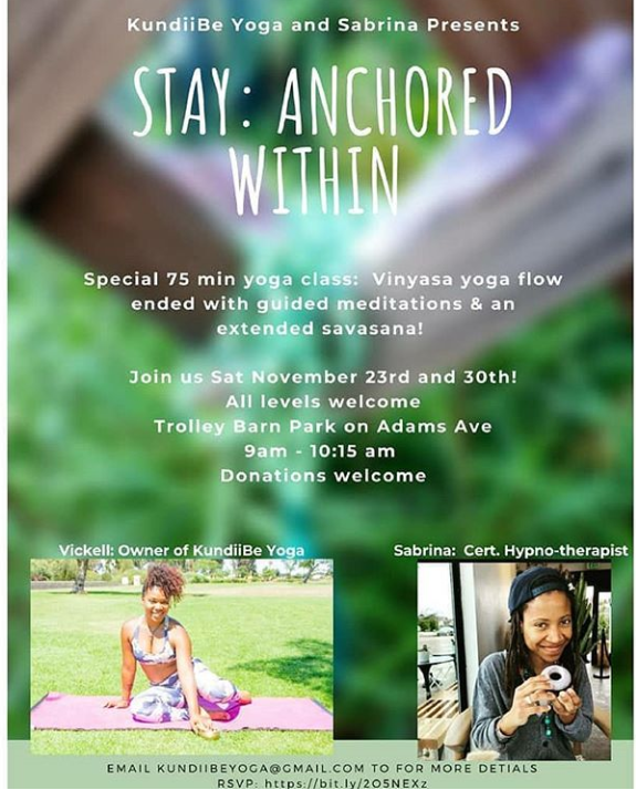 Stay: Anchored Within was a 75 min yoga class series in collaboration with Kundiibe Yoga of San Diego. Progressive relaxation and mediation exercises are a large part of InSimulation’s work as I’ve noticed it’s great effectiveness in calming the body and mind for clarity. Each class after has featured this technique.